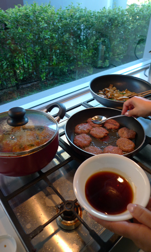 豆腐チゲだけでは夜ごはんにならないからと、韓国風ハンバーグも作ってくれました。タネをこねるとき、パイナップルを入れていましたよ。面白い~。