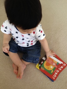 こちらの図書館で借りてくる絵本もそうですが、まだ小さい息子にはこういう厚紙でできたボードブックが破れにくくていいですね。まぁ、それでも、この絵本のように修理する必要がでてきますが。う〜んと使って楽しんでいます。